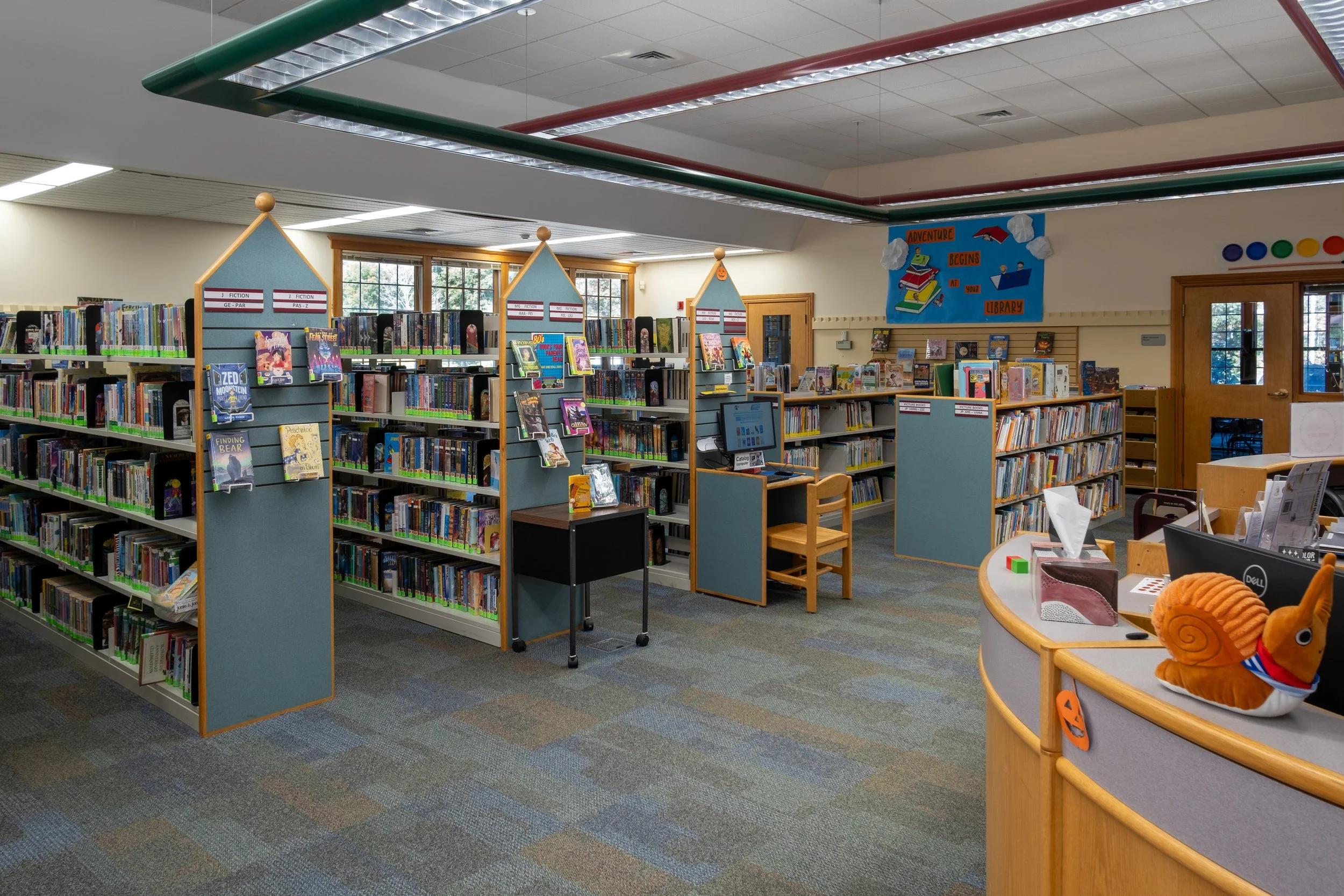 This location is a work-from-home dream. Every library has its niche - they know their patrons. On more than one occasion, I have gone into a library blind hoping to find somewhere to work where my toddler isn’t climbing all over me, only to be disappointed because there are only armchairs. Armchairs are GREAT for getting comfy-cozy with a book, but not so great for frantic typing with carpal tunnel. Nesmith has so much table and desk seating so it is great for this purpose. There is also some outdoor seating in the garden/storywalk area.