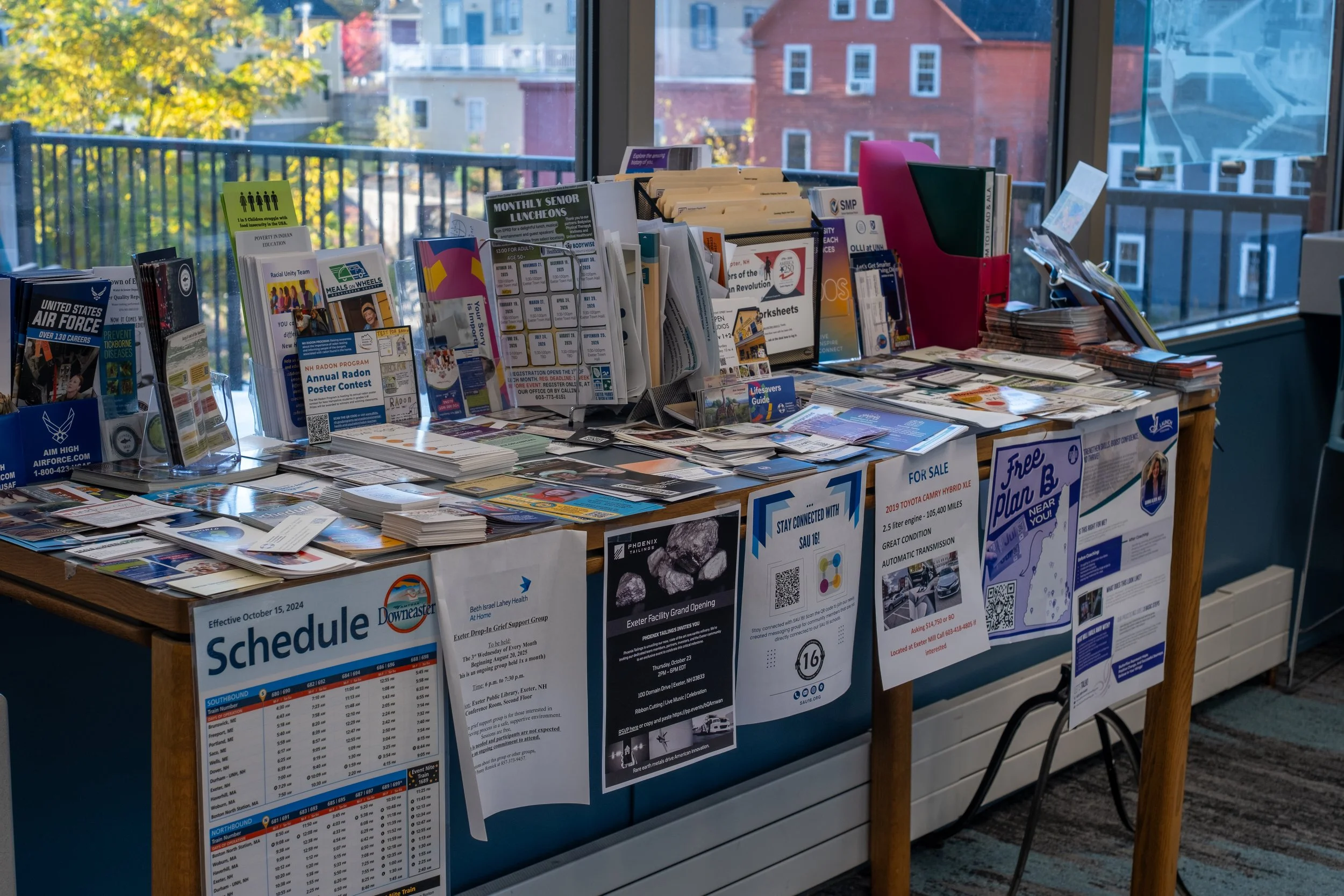 Location, location, location. The library is located on the opposite side of the Squamscott river - directly across from from a coffee shop, book store, art store, and a number of other artisan-type shops. There is a walking path along the riverfront, and a HUGE playground just a short drive down the road.